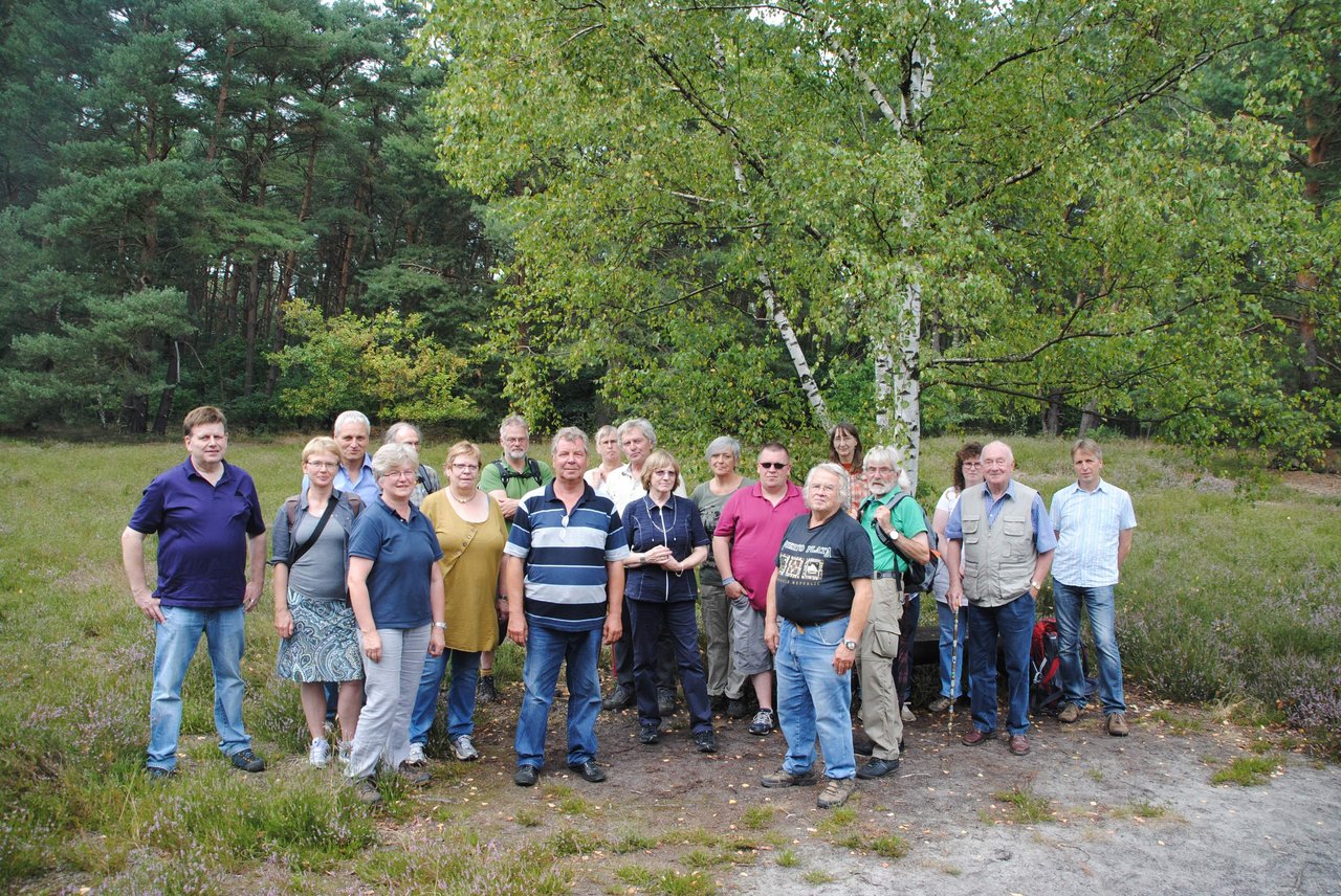 Was hat Hermann Löns mit Brokeloh zu tun? Das und einiges mehr haben die Teilnehmer der diesjährigen „Wanderung ins Grüne“ des Ortsverbandes Mittelweser von Bündnis 90 / Die Grünen erfahren können. Unter fachkundiger und kurzweiliger Information zu Ursprung und Entstehung des Lönsweges durch Joachim Niemeyer erfuhren die Wanderer an diesem schönen Sommertag auch einiges mehr zu den vielen Sehenswürdigkeiten entlang dieses Wanderweges rund um Brokeloh. Denn die Lönsbuchen, die Brokeloher Mühle und natürlich die Brokeloher Heide und der Aussichtspunkt “Tempelberg“ sind nur einige Punkte, die der zehn Kilometer lange Wanderweg bereithält. Und so stand bei den Teilnehmern an der Wanderung des Ortsverbandes der Grünen nicht Hermann Löns im Vordergrund, sondern das aktive Erleben und Erwandern des Golddorfes Brokeloh. Fehlen durfte an diesem Tag natürlich auch nicht der Besuch auf dem Bickbeernhof und der Abschluss auf dem Mittelaltermarkt „Fantastica Festival“ . Rundum gelungen war dann auch das Fazit am Ende dieses Sommertages. Und was hat nun Hermann Löns mit Brokeloh zu tun? Finden Sie es heraus bei einer Wanderung auf dem Herman-Löns-Weg.