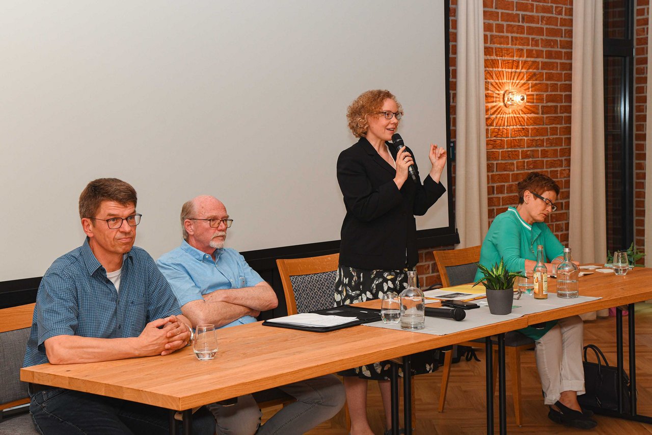 Dr. Julia Verlinden, MdB B90/GRÜNE, ordnete die Gesetzesinitiative für die Anwesenden ein und korrigierte auch die ein oder andere Falschmeldung: Niemand müsse etwas tun, bevor die Heizung kaputt ist. Bei einer Heizungslebensdauer von 25-30 Jahren sei man aber gut beraten, sich über einen Energieberater zu informieren und ohne Panik, wohlgeplant und finanziell gefördert sich auf eine klimafreundlichere Heizung vorzubereiten. Sehr wohl werde aber früheres Umrüsten mit einem „Sprinterbonus“ gefördert. Je nach Einkommen gibt es bis zu 70% Zuschuss für den Heizungstausch. Verlinden klärte außerdem darüber auf, dass die Förderung sich nicht nur auf z.B. auf eine Wärmepumpe beziehen, sondern auf alle Investitionskosten in diesem Zusammenhang, jedes Rohr, den Heizungskörpertausch etc.. Zudem werde für eine sinnhafte Planung auch der Energieberater (mit BAFA-Zulassung) zu 80% vom Bund gefördert.
